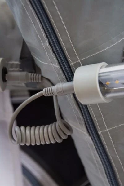 An exciting new accessory for your tent, the SabreLinkâ„¢ lighting system ensures you’re never in the dark. The system allows you to link up to three lights together – that’s 450 LED’s. Each of our AiFrame awnings is SabreLinkâ„¢ ready and can accept lights on the front AirPoles and also the centre poles. An Ace AIR Pro 400, for example, could have three lights along the front and another three in the centre.