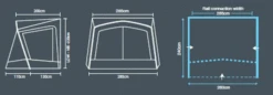 Pre-angled fibreglass poles maximise the space and headroom of the Fairfields awnings. Fitting snugly to host vehicles with a height of 180cm-210cm, it can be quickly and easily attached or detached to be left freestanding. Above the large front door, weatherproof ventilation opposite the vehicle access door offers airflow. A toggle-up detachable groundsheet and large side window add flexibility.