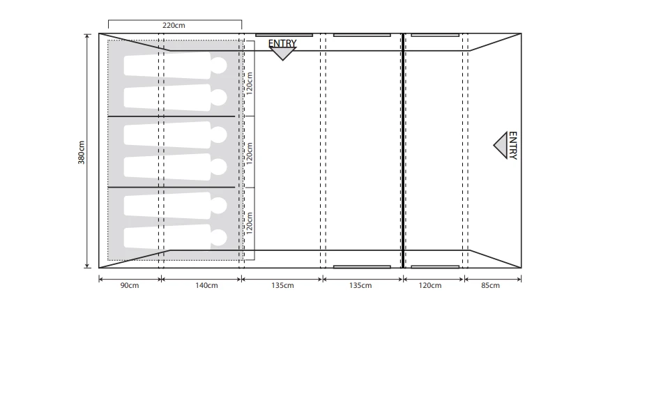 - Darkened Twilight micro polyester 6 person bedrooms with 2/2/2 divider